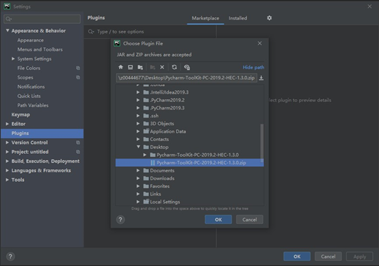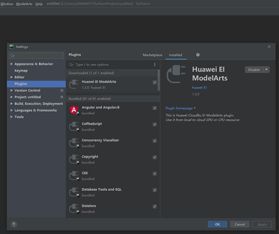 下载一个工具PyCharm-ToolKit-PC-2019.2-HEC-1.3.0.zip,连接本地IDE与云之间的链路:https://www.jetbrains.com/PyCharm/download/other.html