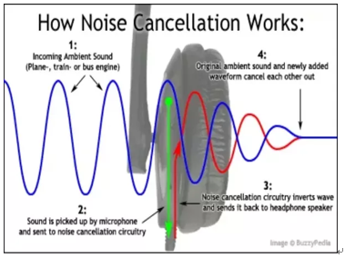 一般主动降噪耳机内部会有一个小的麦克风用来采集外界的声音,通过计算,可以生成一个完全相反的音波,然后和外界的噪音叠加,使得噪音消减。