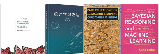 研究生阶段起步并不轻松,从电子电气的方向转到数据科学这个学科并不是非常的顺利。数据科学这个专业是统计系和计算机科学系合作办的,也就是说,这个专业对于统计学和计算机科学的要求是比较高的。当时老师也列出了长长的一串参考书目,印象深刻的是PRML(《模式识别与机器学习》)和BRML(《贝叶斯推理和机器学习》)。大家有兴趣也可以去看看,国内也有很好的书籍,推荐李航《统计学习方法》和周志华的《机器学习》。