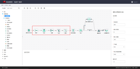 数据规整后,通常需要对数据集进行切分。当数据量比较大的时候,可以切分出训练集、验证集与测试集,直接使用训练集训练模型,用验证集确定最佳的模型参数,用测试集评估模型性能;当数据量较小的时候,通常不切割出专门的验证集,而采用交叉验证的方式确定模型参数,以确保模型得到充分的训练。信用卡申请欺诈检测数据,往往总量特别大,但其中真正发生了欺诈行为的数据却很少,即存在非常严重的数据不均衡问题。因此,在数据集切分过程中,要确保欺诈类的数据能够以一定比例进入到各个数据集中。下面这张截图包含数据分割算子的平台