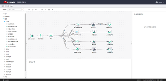 模型训练、推理和评估过程,甚至包含数据处理和特征工程过程,可能需要反复调整与锤炼,但只要功夫深,金箍棒也能磨成针,你终究会得到你想要的。好了,我们假设你已经得到想要的了,你的模型也能一定程度地预测信用卡申请单是否存在欺诈了。至此,黎明的曙光终于照亮东方的长空,天边也出现了一丝鱼肚白。现在你要做的,就是让黎明来的更猛烈一些,把你的模型部署到你的业务系统中,让你的数据欢快的畅游在AI的管道里,喷出耀眼的烟火。部署到业务系统后,你要不断地审视你的结果,并且根据最新的数据不断地调整与优化你的整个模型。但这时候,已经不是我这篇文章能帮助你的了,你展开雄壮的翅膀,去击穿苍穹,尽情翱翔吧。下面这站图是基于华为云AI平台工作流模式,针对信用卡欺诈检测全流程界面截图。