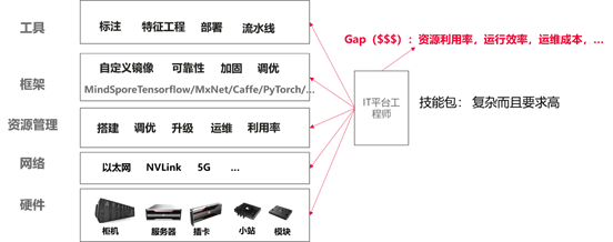 对于AI开发而言,如何利用好算力资源,提升资源利用率是目前特别重要的工作。往往算法工程师并不擅长这些事情,需要有专业的系统级工程师来帮助是实现,从集群的搭建、运维、固件运维、底层算子优化、分布式调优,以及大量的框架维护等方面,另外面向不同部门之间的资源管理也是IT工程师需要关注的内容。对于简单开发而言,自己用开源搭建搞搞是可行的,但是一旦需要大规模的商业化,需要一个有个比较好的平台尤为重要。