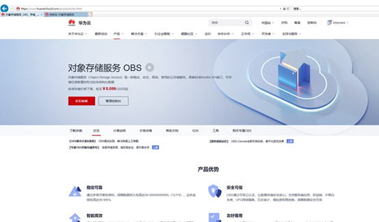 然后我们需要去华为云申明OBS的秘钥: