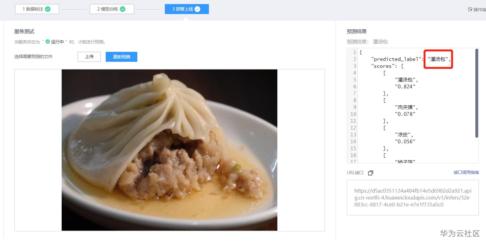 6.模型部署完成,点击上传文件,选择foods_recognition_assi文件下的test目录中的图片进行上传。