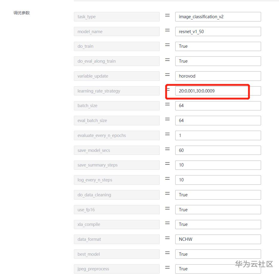 2.1修改learing_rate_strategy的值,如:20:0.002。