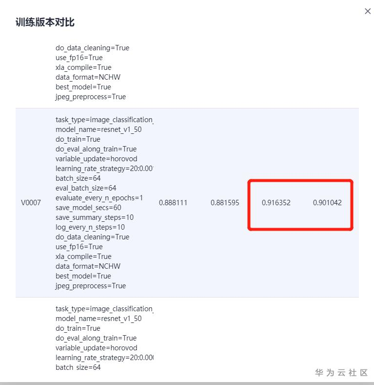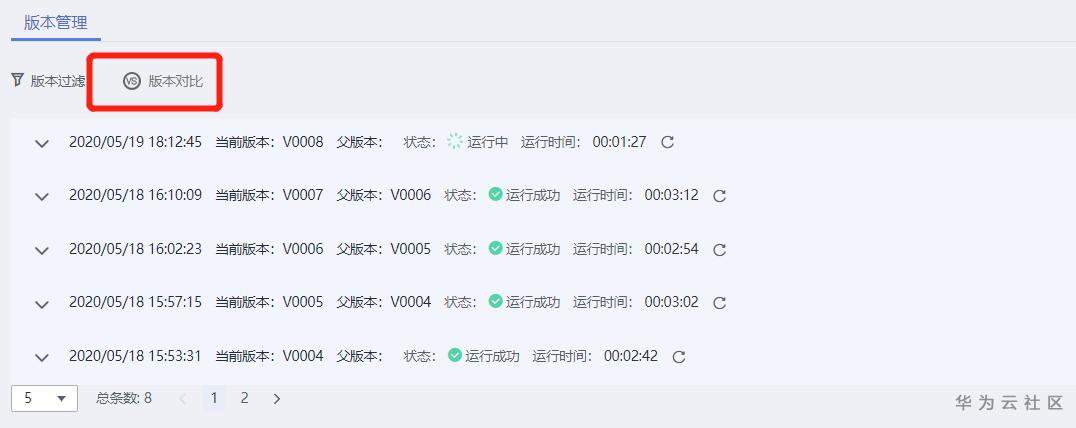 3.等待模型训练完成(大致在3分钟完成),运行成功后点击版本对比,