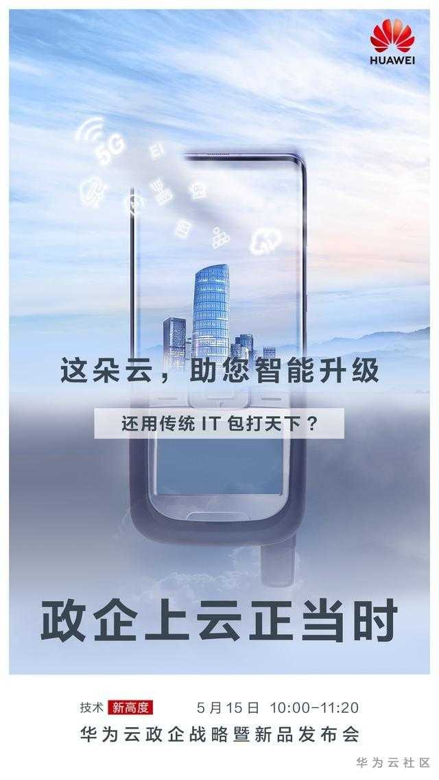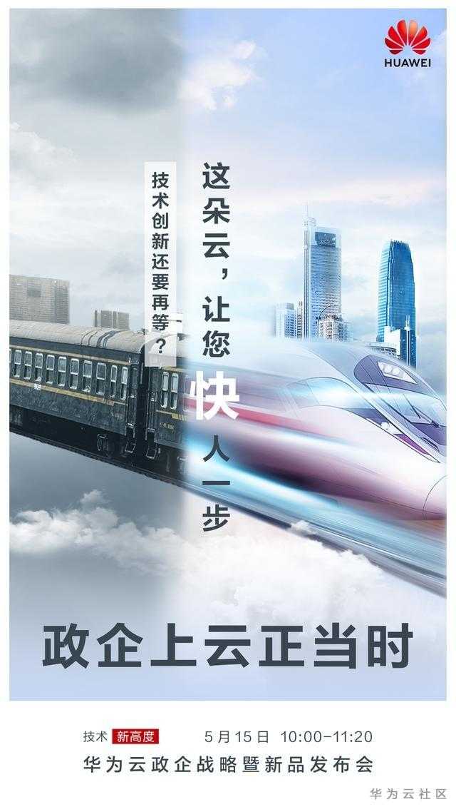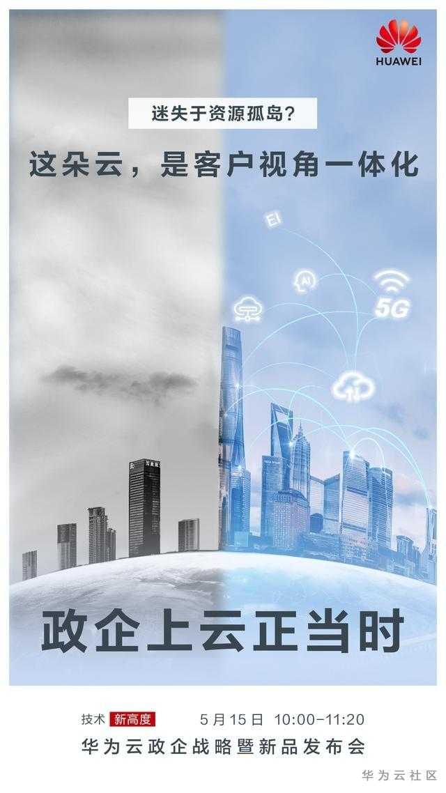 5月15日,我们诚挚邀请您与众多客户、合作伙伴一起,共同见证华为云政企战略暨新品发布,帮助政企抓住新经济、新基建时代下的新机遇,加速从信息化迈向数字化和智能化。