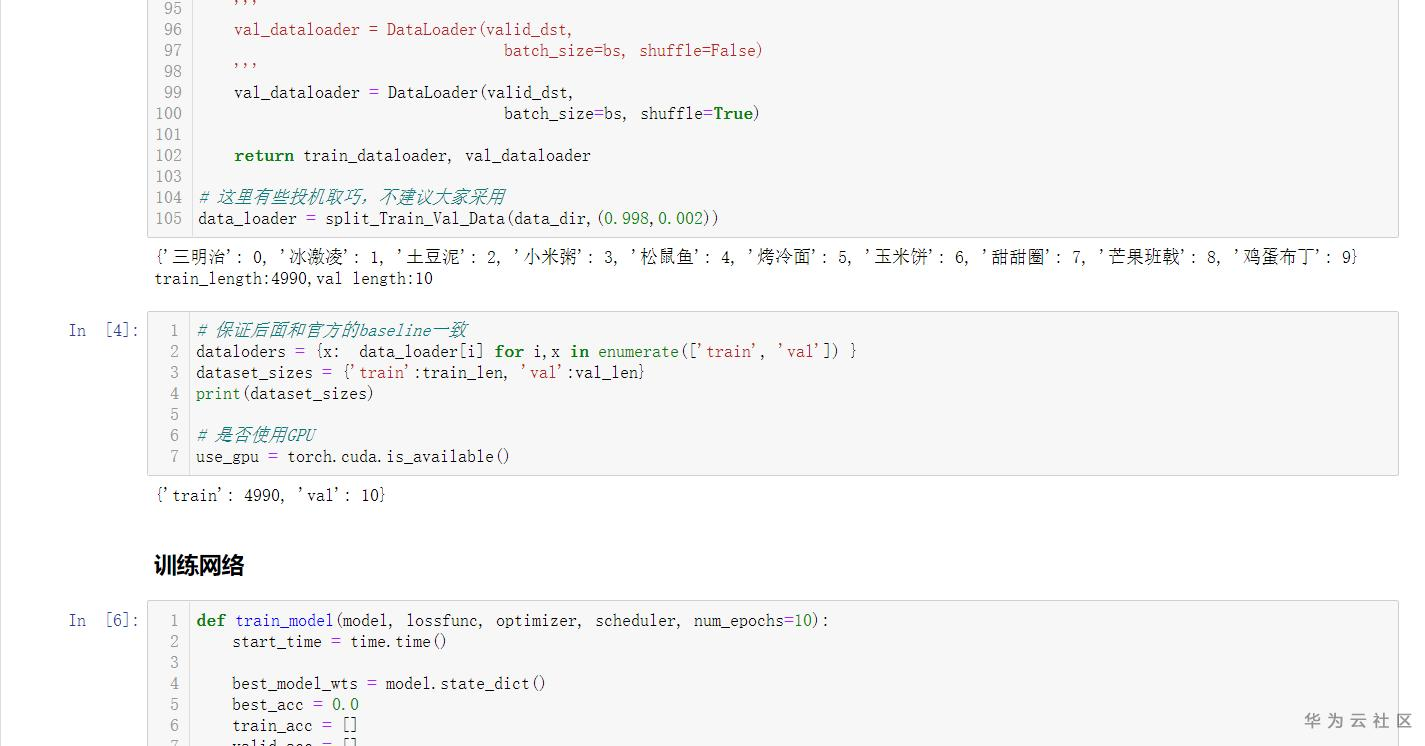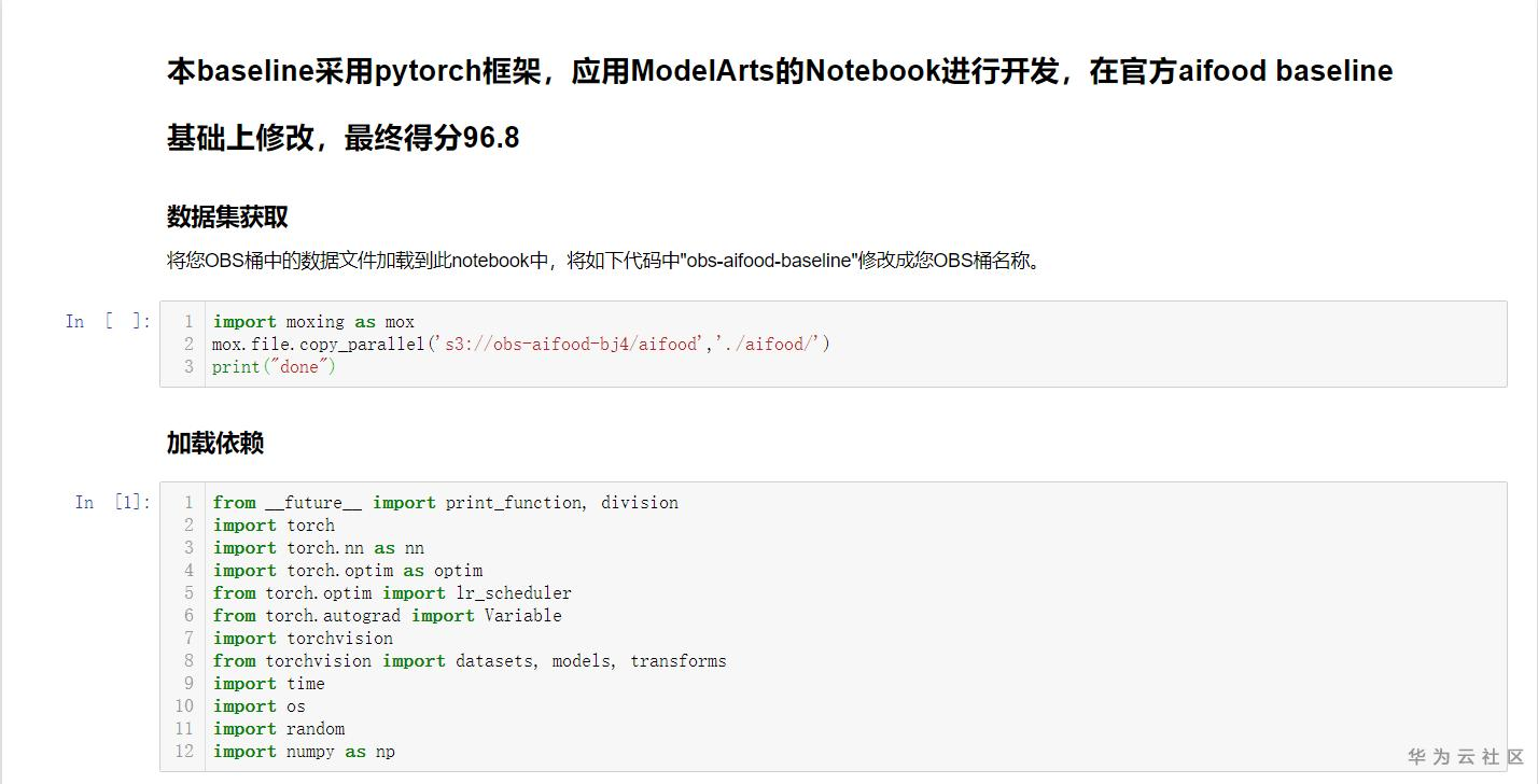 2020年华为云AI实战营的第一章:图像分类,课程中使用的是对美食分类,也用到了预置算法,这让我想到了前些天参加的AI青年班的黑客松大赛,同时是分类问题,也是对美食分类,只不过是10分类,那就顺便分享一下代码吧,最终得分96.8。这个得分并不是很好,虽然很菜,和前几名的大佬无法相比,但还是和大家分享一下(内心OS:终于有时间来写这个了)。代码参考了一位心地善良的选手的分享,感谢他开源了代码,我在他的基础上做了一些细小的工作,使得得分略微提升一点,再次感谢那位心地善良的大佬,在这里附上大佬的GitHub代码链接:https://github.com/Little-Linzi/huawei-aifood/blob/master/aifood_baseline.ipynb