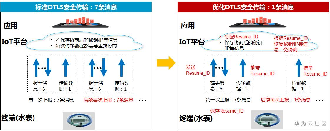 对行业:优化后的DTLS+安全传输,相比采用DTLS协议的终端来说,终端功耗可节约50%。