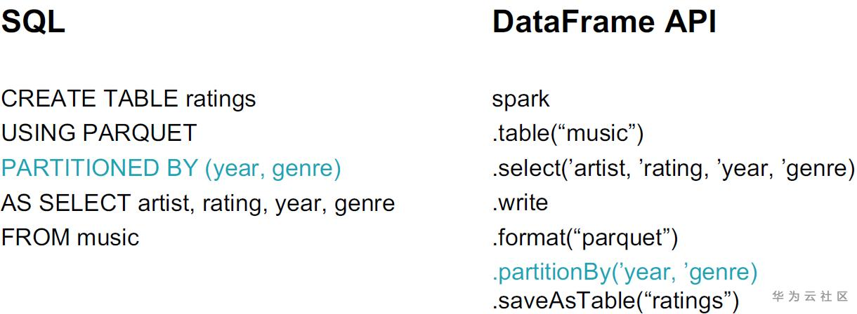 在Spark SQL和DataFrame API分别提供了相应的创建partition的方式。