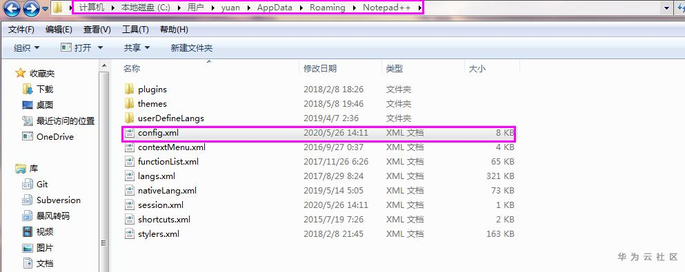 我们在 C 盘 用户的家目录下,依次进入到 C:\Users\用户名\AppData\Roaming\Notepad++ 下,编辑 config.xml 文件