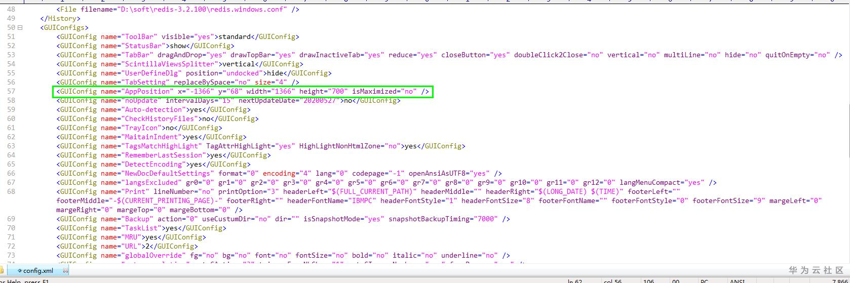 搜索 AppPosition ,大概在 57行,修改 标签中 x 或 y 的值,例如修改为 x="196" y="177"。保存后再次打开 Notepad++ 就出现在了可视的窗口桌面中了。