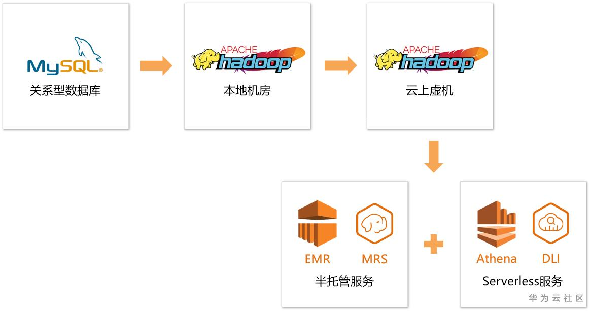 云厂商也纷纷看到了企业对大数据分析的诉求,推出了云上半托管大数据服务(如:AWS、华为云的MRS等)。从单纯虚拟机的性能竞争演变成了大数据管理软件的易用性、大数据组件的性能等竞争。