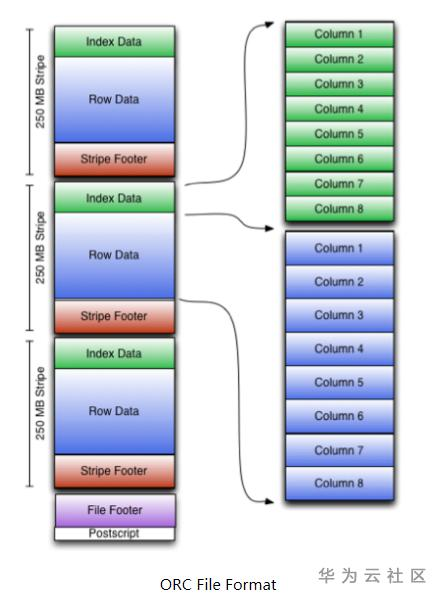 ORC FILE包含了一组组的行数据,被称作为stripes,此外还包含其他file footer等额外信息。