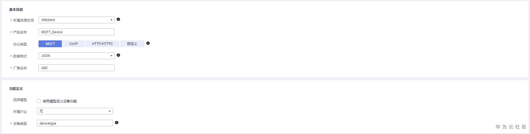 密钥 | 设备密钥,可自定义,不填写物联网平台会自动生成。 |