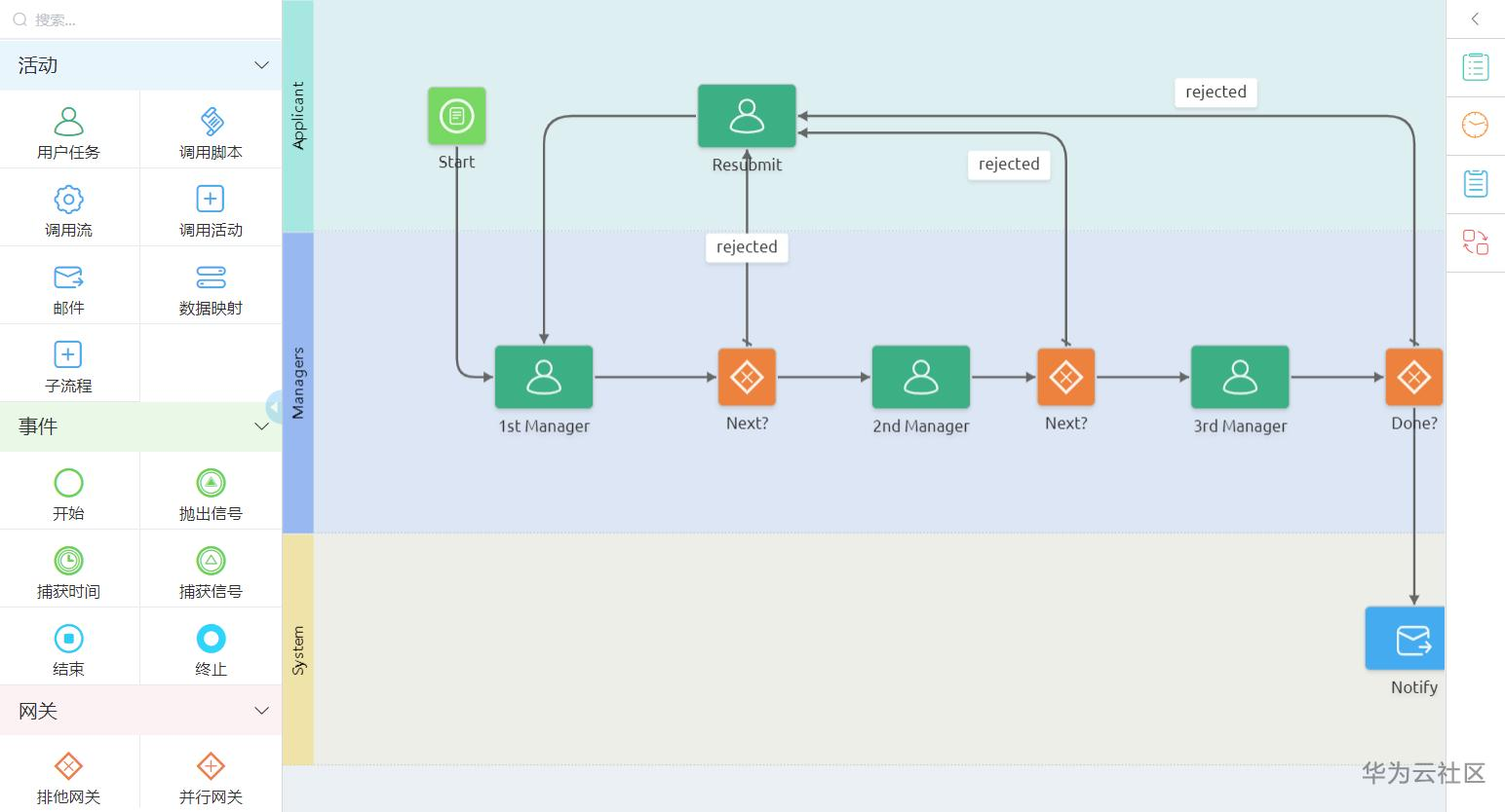 2、软件开发工程师,通过页面编排工具和流程编排的能力,开发者可在平台上组件化、微服务化已有的大量服务,再编写少量代码就可以实现自己想要的应用管理系统。