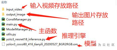 这里我们输入的是视频,使用OpenCV读取的视频,得到视频帧,对每一视频帧进行逐帧处理,注意OpenCV得到的帧是BGR格式,需要转为RGB格式,而且视频帧大小不一定符合模型输入要求的416*416, 所以还要做resize。我在模型转化时,开启AIPP,完成BGR到RGB的色域转换,这样可以提高硬件利用率和程序整体执行效率,官方也建议使用AIPP的,而resize使用OpenCV来完成。之后送入模型,得到推理结果,对推理结果解析,最终将结果写入图片保存。