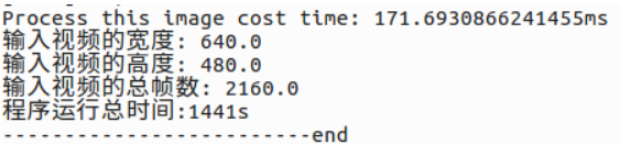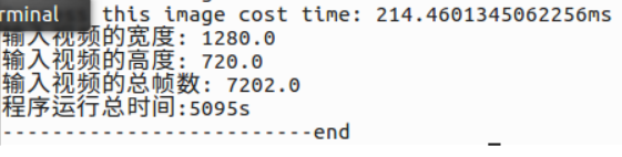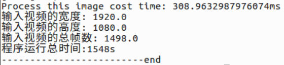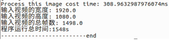 表示程序运行完成,处理一帧大概需要300ms,比较慢,分析可知,主要是读取视频和后处理较慢,推理速度挺快的,后期可能要对后处理做优化,比如使用算子完成后处理,或者硬件解码视频,使用OpenCV读取视频应该不较慢,而且图像质量感觉一般。