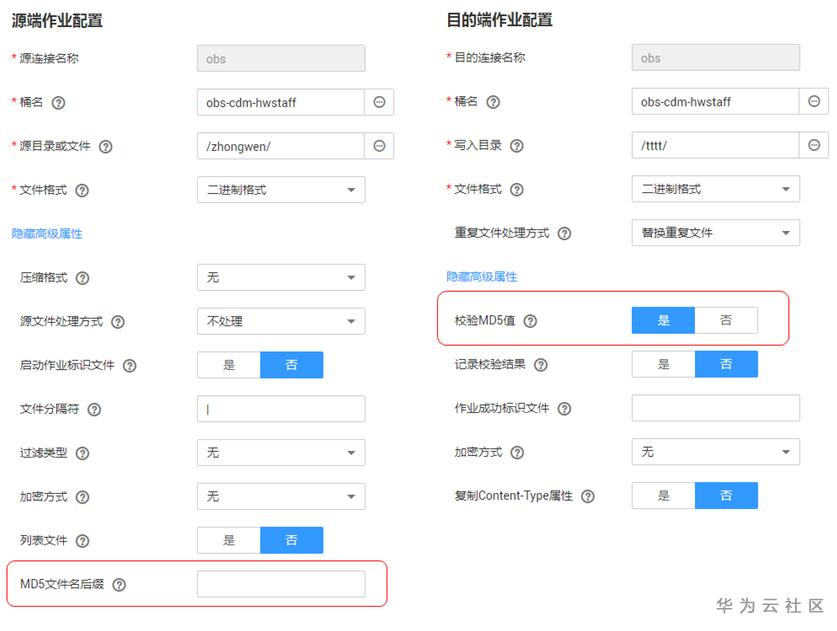 2)能由源端作业参数“MD5文件名后缀”控制,配置为源端文件系统中的MD5文件名后缀。
