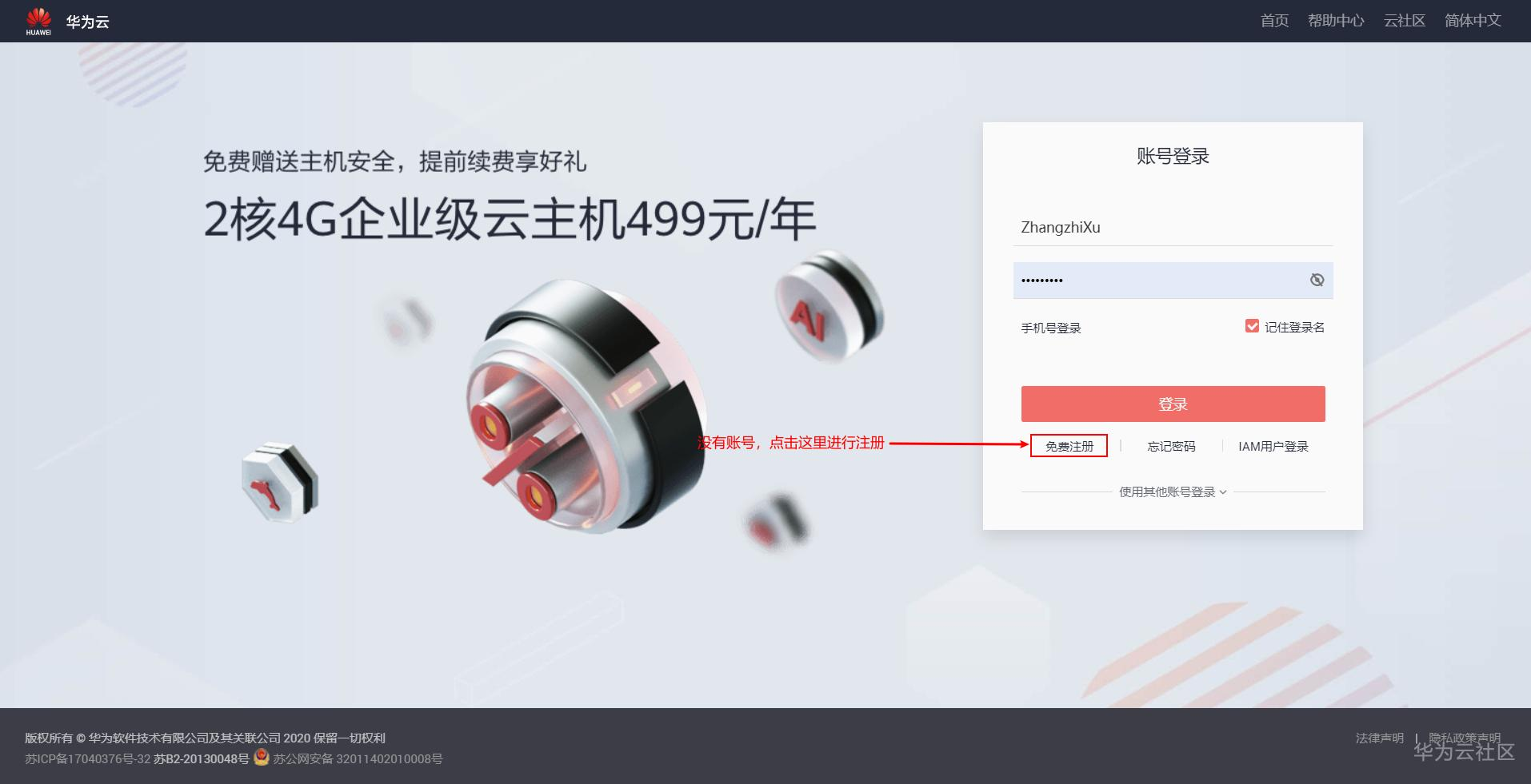 登录华为云官方网站:https://auth.huaweicloud.cn/