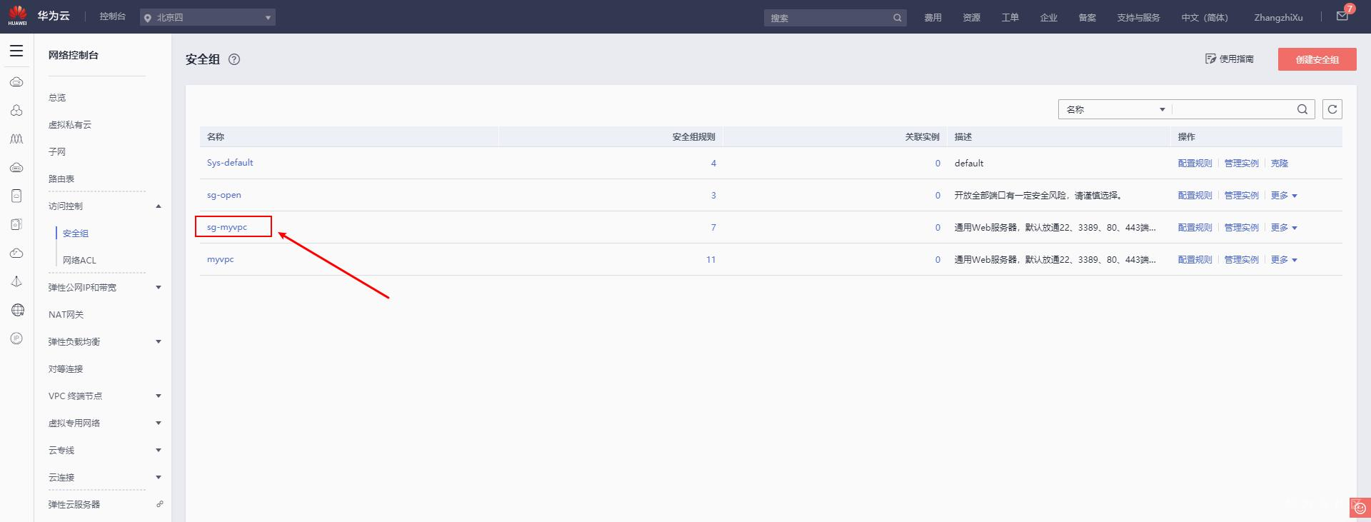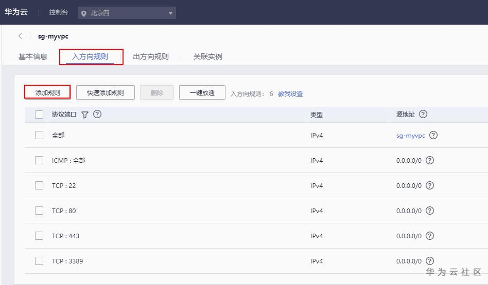 选择创建的安全组,点击配置规则