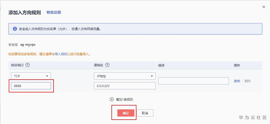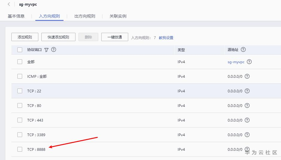 入方向添加相应规则