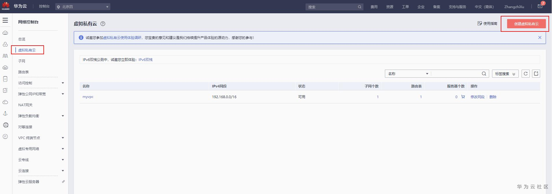 创建虚拟私有云