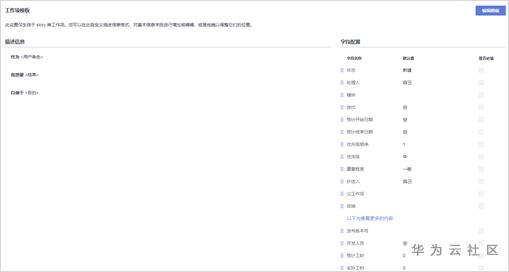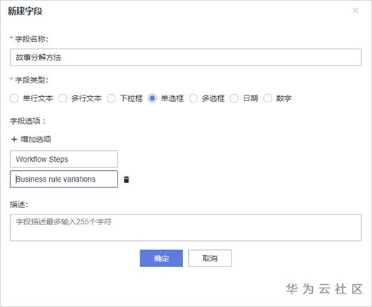 在华为云DevCloud的项目管理中Story并没有缺省字段来记录分解方法,因此需要通过“Story设置”特性来自定义此字段。用户可以在项目中通过“设置”-“项目设置”-“Story设置”-“字段与模板”进入工作项模板页面,如图1所示: