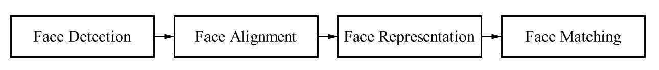不管是基于传统图像处理和机器学习技术,还是利用深度学习技术,其中的流程都是一样的。如图1所示,人脸识别系统都包括人脸检测、对齐、编码以及匹配四个基本环节组成。所以该部分首先通过对基于传统图像处理和机器学习算法的人脸识别系统进行概述,就可以看出整个深度学习算法在人脸识别领域内发展的脉络。