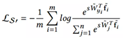 Contrastive loss引入了两个信号,并通过两个信号对网络进行训练。其中识别信号的表达式如下: