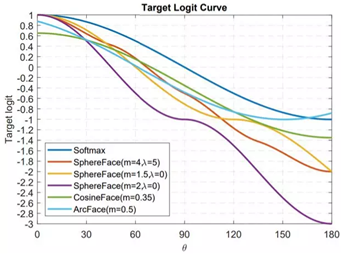 看了这么多基于分类的人脸识别论文,相信你也有种感觉,大家似乎都在损失函数上做文章,或者更具体一点,大家都是在讨论如何设计上图的 Target logit-θ 曲线。
