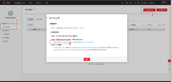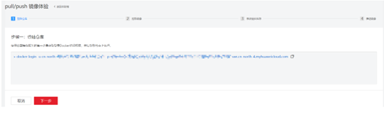 这里后面引导了客户如何将本地镜像推上云端,第一步是登陆仓库: