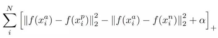 直接贴出Triplet loss的损失函数,其输入的不再是Image Pair,而是三张图片(Triplet),分别为Anchor Face, Negative Face和Positive Face。Anchor与Positive Face为同一人,与Negative Face为不同的人。那么Triplet loss的损失函数即可表示为: