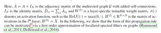 来自论文:Kipf T N, Welling M. Semi-supervised classification with graph convolutional networks[J]. arXiv preprint arXiv:1609.02907, 2016.
