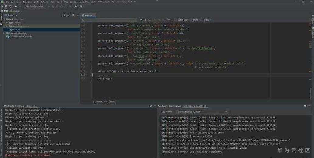 除了本地IDE工具功能以外,PyCharm能不能做得更好?我觉得就PyCharm自身来看,发展已经上了正规,我认为目前应该做的是生态的扩展,或者说联合。与谁联合?与公有云。如果能够做到在本地编码、利用公有云的计算资源进行调试,那相当于做到了云边协同。华为云ModelArts提供了插件,支持让本地的PyCharm与ModelArts结合在一起使用(详细的过程请参考文档:https://bbs.huaweicloud.cn/blogs/160467)。