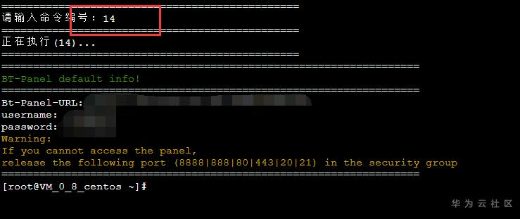 4. 这时候我们输入数字14,就能看到宝塔面板的登录地址还有用户名和密码。