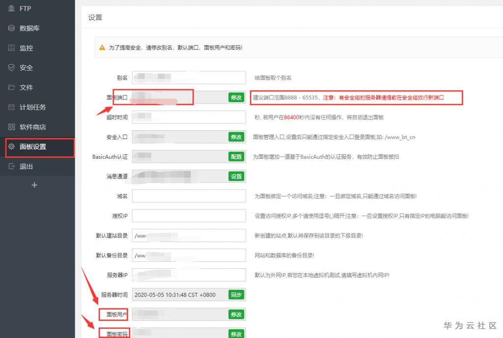 6.为安全起见,建议修改你的用户名和密码,以及面板默认端口。