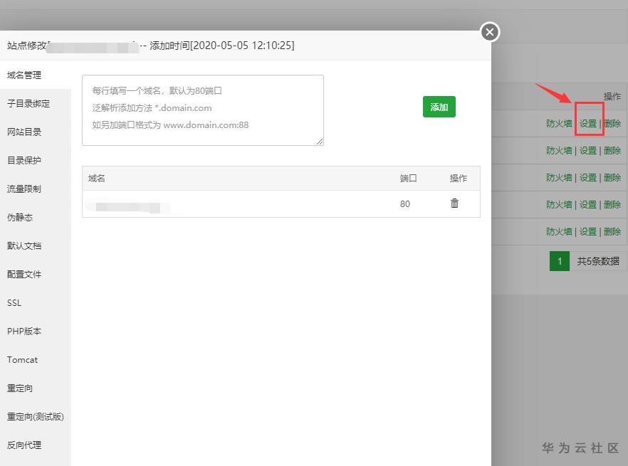12.最后再讲一下,如何在宝塔面板管理你的网站,以及设置各项参数。点击面板左侧的“网站”,选择你的网站后面“设置”,就可以看到各种功能设置了。