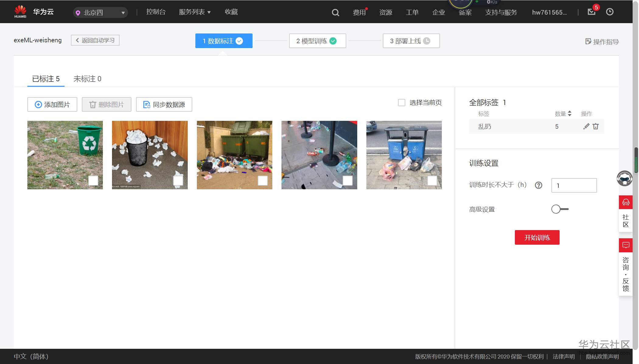 (2)点击开始训练,等待模型训练成功,中间等待的时间继续搜集相关图片以扩大数据集。