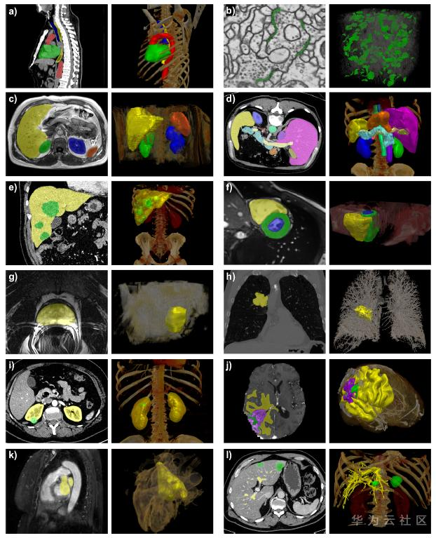 图1 典型的生物医学影像数据集的图像与分割标注[1]