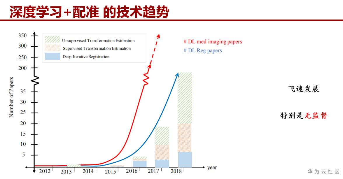 由于图像配准数据常常是没有金标准的,所以深度学习的方法在无监督方向发展更快[1]。同时,无标注的医学原始数据量也大,更符合深度学习的大数据量要求。