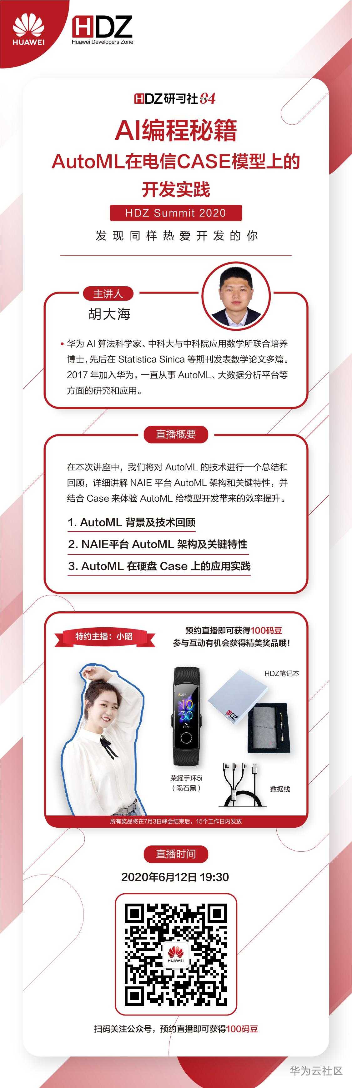 【摘要】 观看直播即可获得100码豆,参与留言互动即有机会获得华为手环、HDZ笔记本套装和三合一数据线哦~