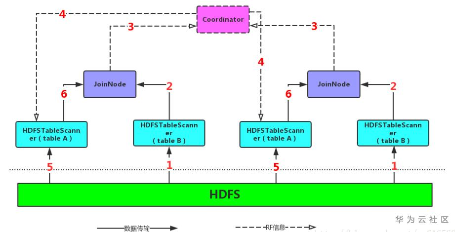 6、左表使用RF完成扫描之后将数据交给Join节点,以完成整个Join过程。