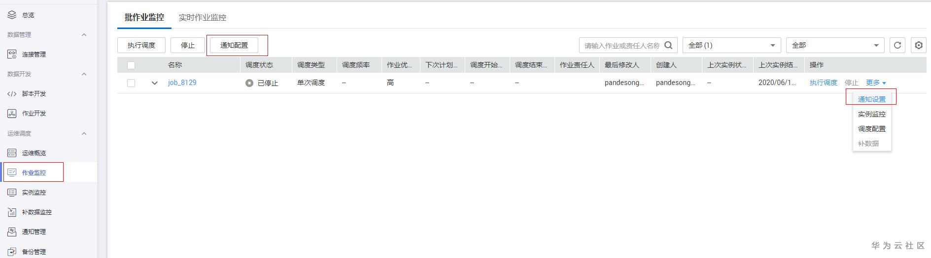 3. 作业通知支持多个作业配置同一个smn主题,方便统一管理