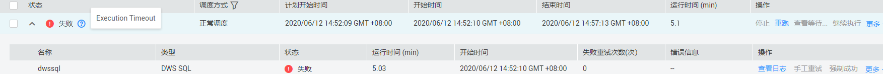运行时间超过了配置的最长时间作业状态为失败