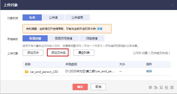 【摘要】 物体检测2.2小节—零代码人车检测模型开发 1、先下载数据集。然后,解压。 在2.2学习文档中,下载数据集解压Train下面是训练集。Test是测试集。2、上传数据到OBS,用obs客户端来上传。 这里建议新建一个OBS新的桶。然后,在这个在华北-北京四的一个桶,点击上传 在学习文档中,下面 下载本机,解压。也是有2个文件夹train和test 上传文件夹car_an...