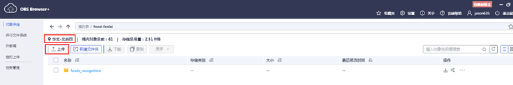这里建议新建一个OBS新的桶。然后,在这个在华北-北京四的一个桶,点击上传