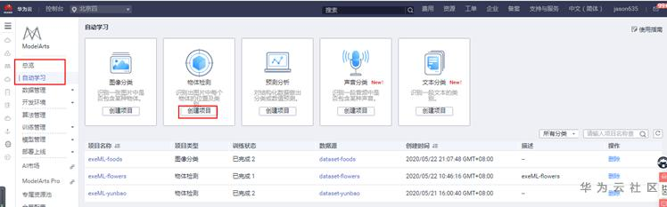 3、进入moderarts,创建自动学习的项目
