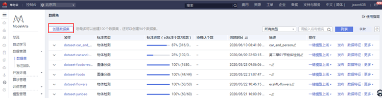 点击创建数据集 ,