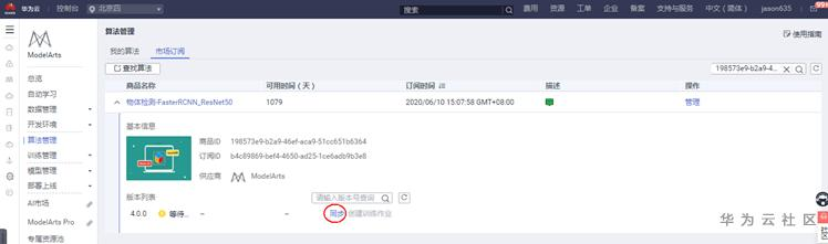 下一步,确认。然后,进入应用控制台中,去使用这个算法